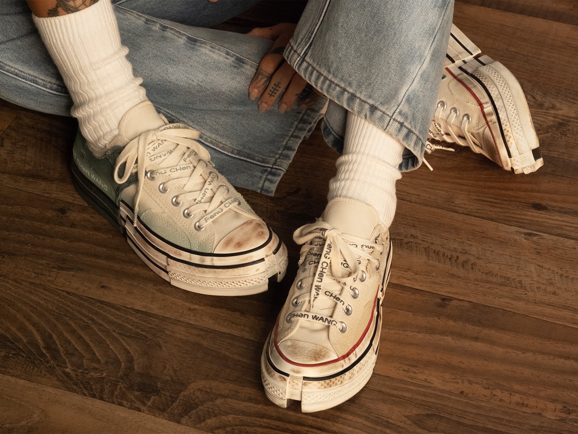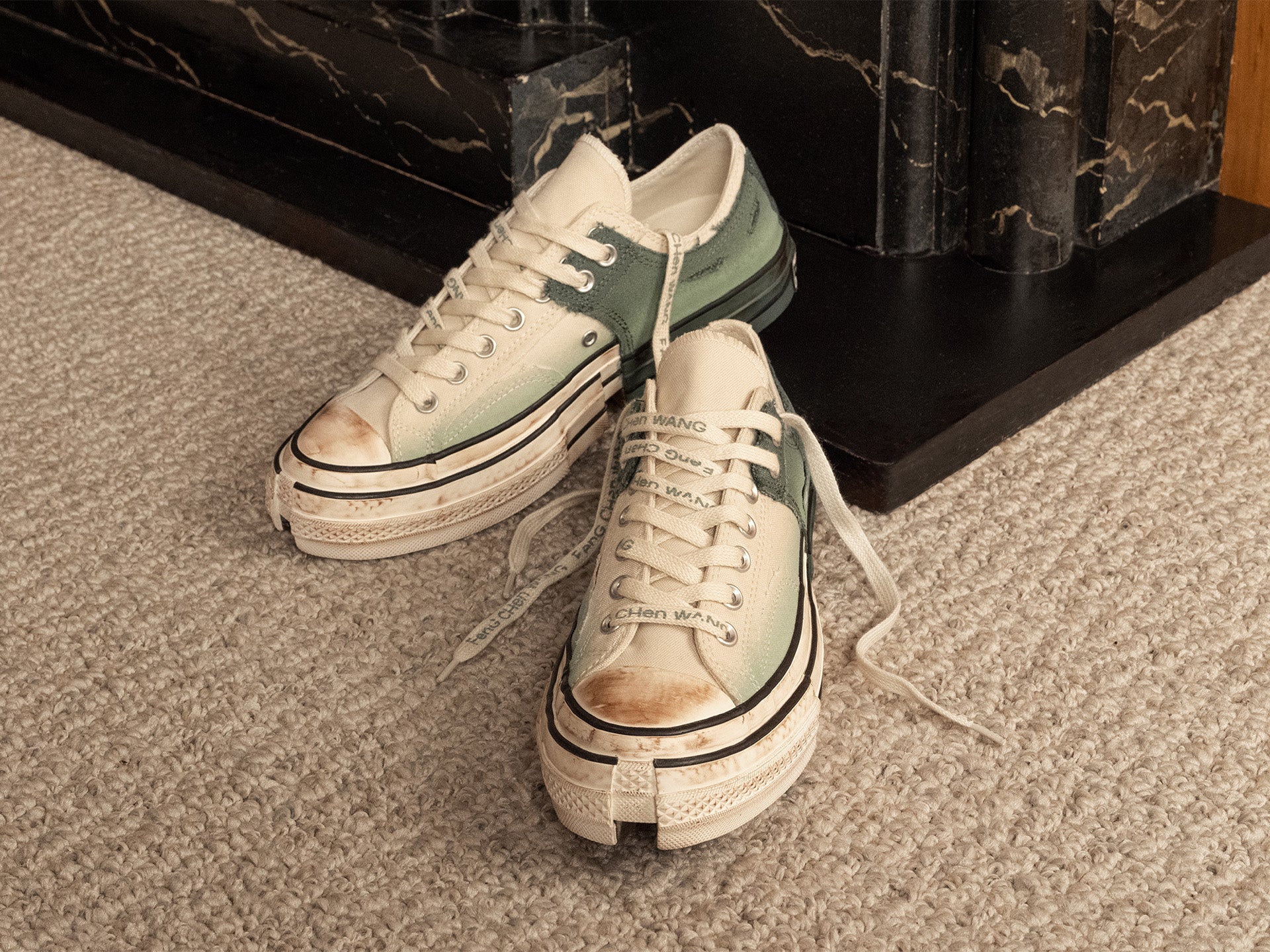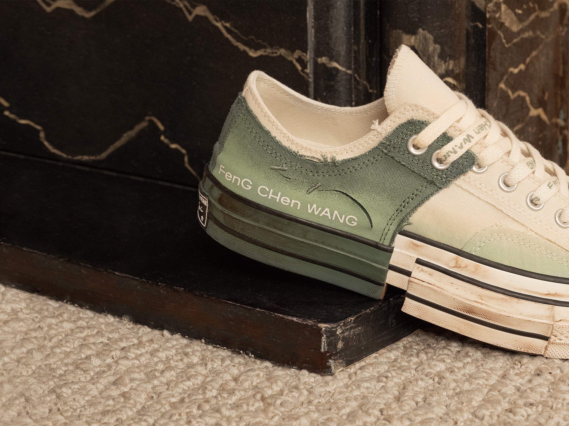 Feng Chen Wang drops a low-top edition of her disruptive 2-in-1 Chuck 70, featuring a gradient print in two new colorways, Brown rice & Myrtle green.
